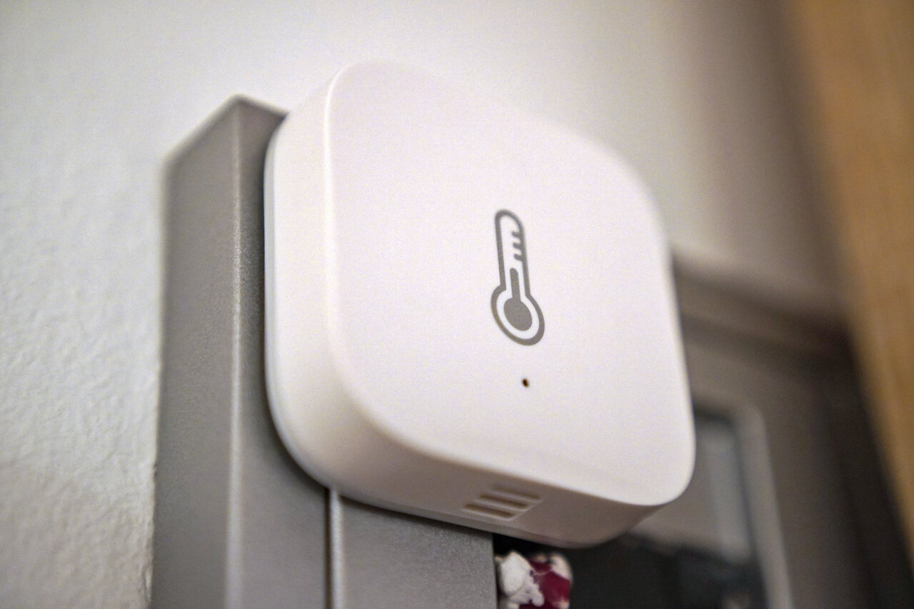 The humidity is measured by a Xiaomi Aqara sensor. This actually is a Zigbee device and I use those everywhere in our house. After some testing I found a suitable spot close to the ceiling where it could reliably connect to a Zigbee repeater upstairs.